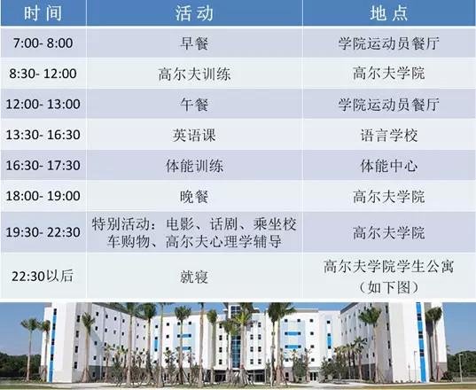 高尔夫夏令营课程安排