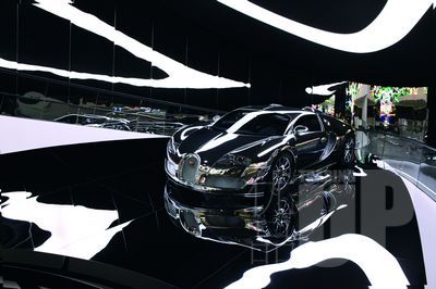 大众工厂里陈列的镜面漆版布加迪