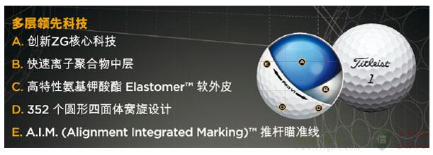 新款Pro V1提供球友们需要的极致距离以及绝佳耐用性,还有强化的后旋控制以及更稳定的飞行。先进的性能来自于创新的ZG核心科技,快速离子聚合物中层,高特性氨基甲酸酯Elastomer™软外皮以及352个圆形四面体窝旋设计。新款产品的352个窝旋分为5种大小(上一代Pro V1是392个窝旋),这样可以更好地覆盖整个球面,实现三轴对称。这些空气动力学方面的新设计可以使球在大风中更好地保持弹道,实现具有穿透力的飞行。